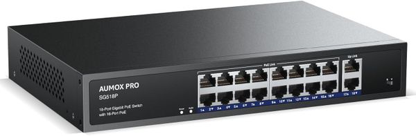 Trong kỷ nguyên kết nối vạn vật (IoT) và giám sát an ninh độ nét cao, việc sở hữu một hạ tầng truyền dẫn mạnh mẽ là yếu tố sống còn. AUMOX PRO SG518P là dòng Switch Unmanaged 18 cổng Gigabit (16 cổng PoE + 2 cổng Uplink) được thiết kế để xử lý các tác vụ truyền tải dữ liệu nặng nề nhất. Với tổng công suất lên tới 250W và khả năng tương thích chuẩn 802.3af/at, đây là "trái tim" bền bỉ giúp vận hành hệ thống Camera IP, Wifi Access Point và điện thoại VoIP của bạn một cách mượt mà nhất.