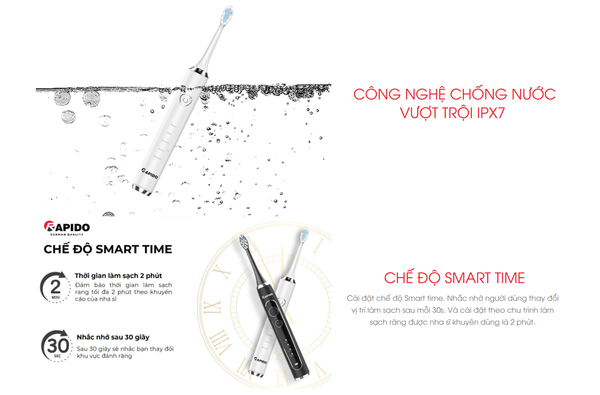 Tích hợp tính năng nhắc đổi vùng chải và tự động ngắt sau 2 phút – đúng theo khuyến nghị nha khoa.