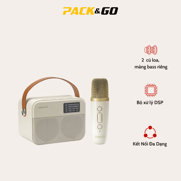 Bộ Loa Mic Karaoke Mini Bluetooth PACK&GO KSM01 là mẫu loa karaoke mini di động được thiết kế nhỏ gọn nhưng sở hữu hệ thống loa kép cho bass mạnh, mang đến trải nghiệm âm thanh sống động và rõ ràng. Sản phẩm đi kèm micro không dây tiện lợi, phù hợp cho nhu cầu hát karaoke gia đình, tụ họp bạn bè và giải trí cá nhân.